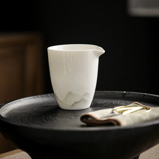 Suet White Jade Serene Mountains Ink-Wash Artistry Tea Cup