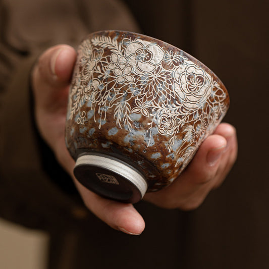 Vintage Silver-Engraved Antique Clay Gongfu Tea Cup